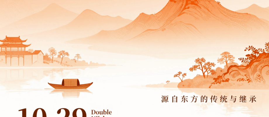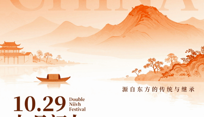 模型:image 提示词 平面插画,海报设计,高级感排版,新中式美学,中国当代艺术风格,新中式宋代主题重阳节海报,国风美学,高饱和渐变背景,浅橙白渐变色,工笔画,层次感,弥散渐变,细节满满,左上方放标题CHINA,渐变和肌理磨砂处理,造型柔和,中式建筑,画面主体是一一个在河上漂流的小船,远处是渐变的…