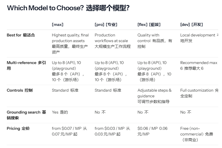 | Flux.2 [max] | Generations(生成图片) | 文字输出 | 输入$5/ 1M tokens输出$10/ 1M tokens |