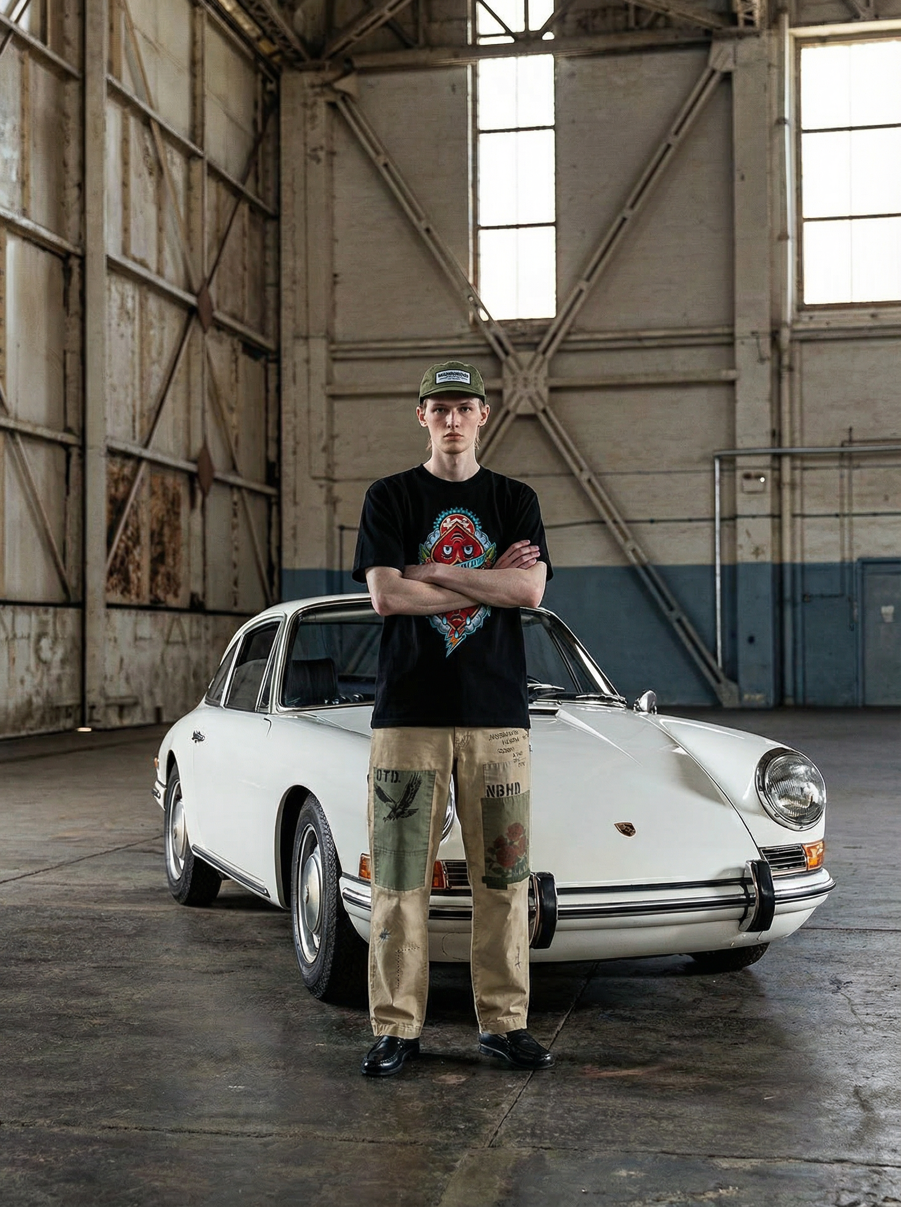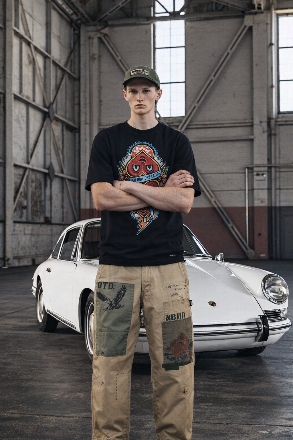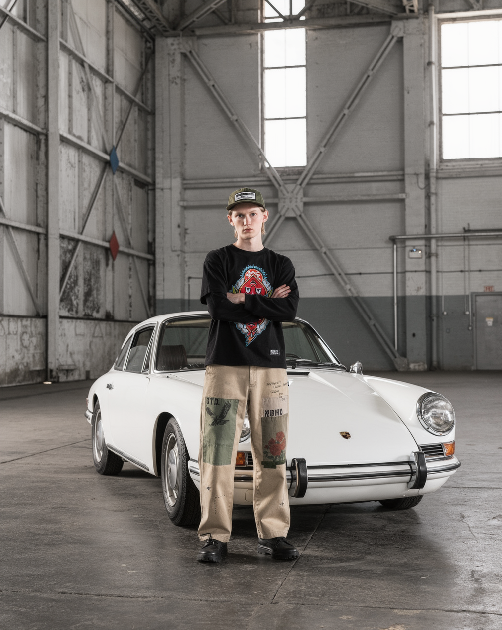 将图3的印花置于图二人物的长袖卫衣上;