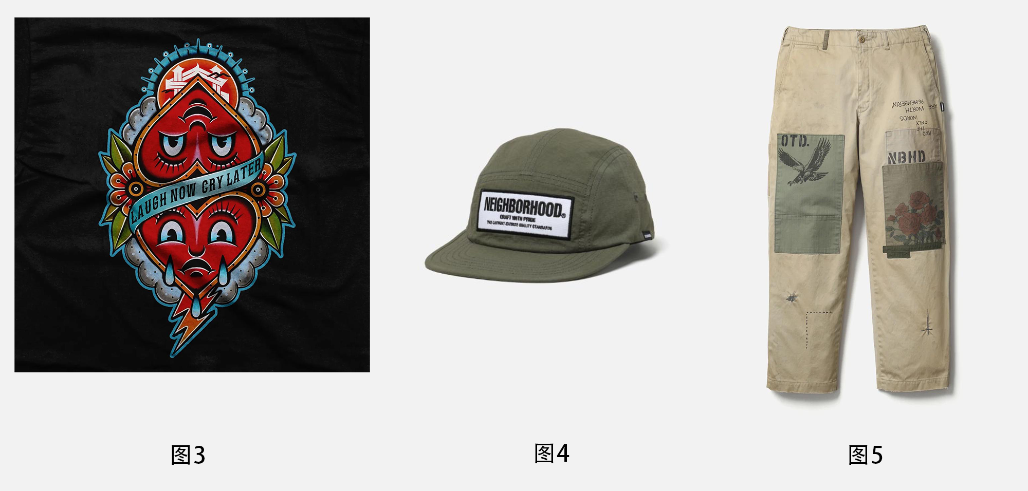 将图4的帽子和图5的裤子给图2的人物穿上;